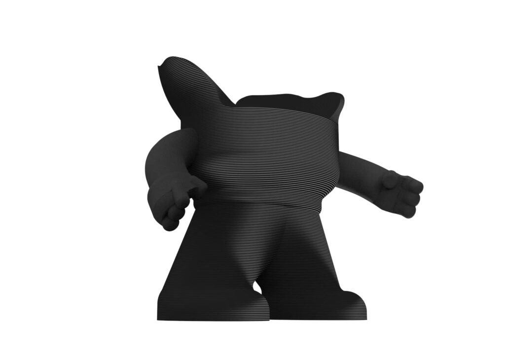 Fabricado utilizando tecnología de impresión 3D de alta calidad, este soporte está compuesto por materiales robustos y ligeros, garantizando durabilidad y estabilidad. Su diseño incorpora capas superpuestas que aseguran una mayor resistencia y un acabado futurista.